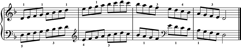 Minor scales are presented in the natural, harmonic, and melodic forms. Practice one scale for each form, but each tonal center must be different.