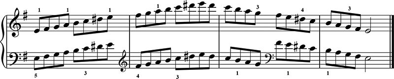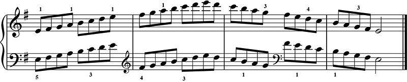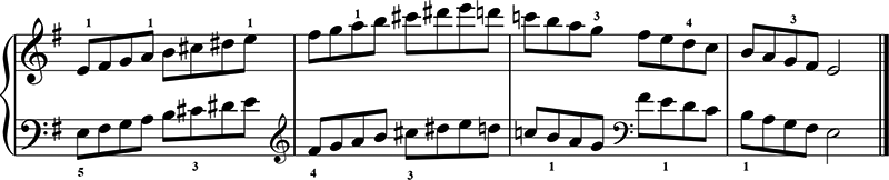 Play the scales with two hands, ascending and descending, two octaves. Choose below to see all three forms.