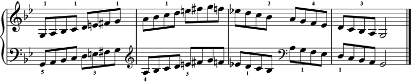 Play the scales with two hands, ascending and descending, two octaves. Choose below to see all three forms.